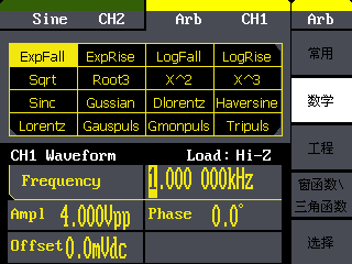 內(nèi)置46種任意波形(含直流),包括常用數(shù)學(xué)、工程、窗函數(shù)及其他常見波形