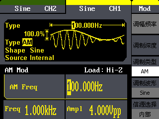 • 豐富的調(diào)制功能:AM、DSB-AM、FM、PM、FSK、ASK、PWM