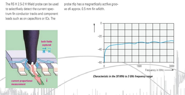 探頭帶寬的上限是由探頭頭部的大小和設(shè)計所決定的。所有近場探頭都是無源的,可接入至示波器、接收機或頻譜分析儀的輸入端口。R&S®HZ-16前置放大器可提高探測靈敏度。