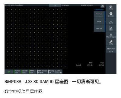 R&S®DSA DOCSIS 信號(hào)分析儀旨在為用戶提供優(yōu)越信號(hào)質(zhì)量。DOCSIS 是在混合光纖同軸 (HFC) 有線電視網(wǎng)絡(luò)中傳輸 IP 數(shù)據(jù)的標(biāo)準(zhǔn)。全新 DOCSIS 3.1 標(biāo)準(zhǔn)支持的數(shù)據(jù)率,滿足大數(shù)據(jù)吞吐量的要求。R&S®DSA 可對(duì)物理層上的 DOCSIS 3.0、EuroDOCSIS 3.0 和 DOCSIS 3.1 信號(hào)進(jìn)行精確、不間斷的實(shí)時(shí)分析。用戶可以檢測(cè)到降低信號(hào)質(zhì)量的原因,例如侵入、反射和激光削波。R&S®DSA 可以使用雙接收機(jī)分析下行和上行信號(hào)。