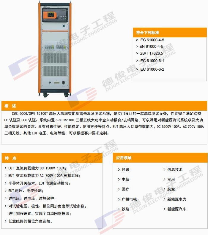 高壓大功率智能型雷擊浪涌測(cè)試系統(tǒng)CWS 600G/SPN 15100T