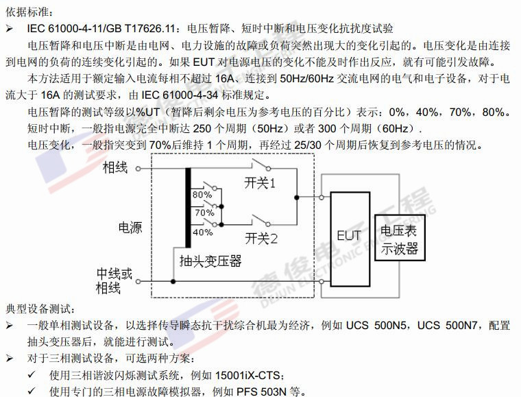 電壓暫降、短時(shí)中斷和電壓變化抗擾度試驗(yàn)方案