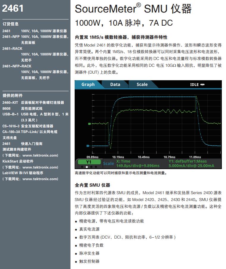 2461數(shù)字源表1000W 10A脈沖 7ADC